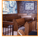 with the remaining original oak pews.